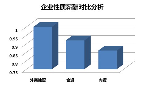 青岛与日本,韩国仅一水之隔,地缘优势明显,所以青岛地区成为日韩资企业的主要投资区。以青岛地区外商独资企业薪酬水平为基数,合资和内资企业的薪酬系数分别为0.92和0.86;2010年内资企业薪酬系数仅为0.82,内外资薪酬差距在缩小。青岛地区民营经济规模小,国有企业仍然占据主导地位,但民营企业的薪酬水平增长较快。