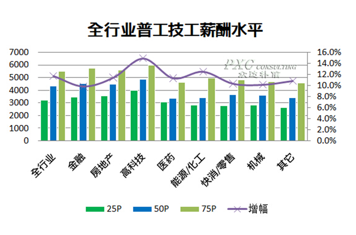 全行业整体薪酬水平较去年略有上升,薪酬增长幅度略有下降,高科技、房地产和金融行业依然占据全行业薪酬涨幅前三的位置。医药和能源化工行业薪酬涨幅则呈现与其他行业不同的增长势头。